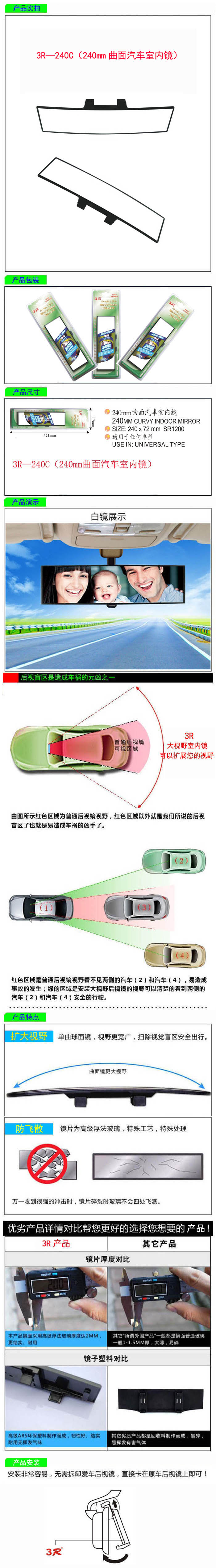 • 型號:   3R—240C(240mm曲面汽車室內鏡)