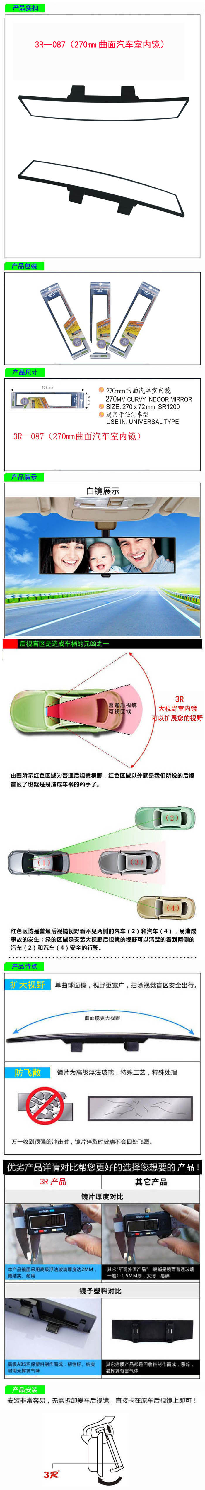 • 型號:   3R—087(270mm曲面汽車室內鏡)