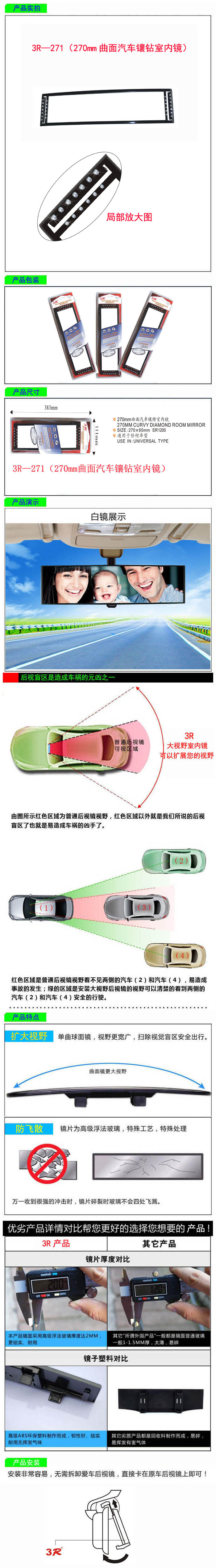 • 型號:   3R—271(270mm曲面汽車鑲鉆室內鏡)