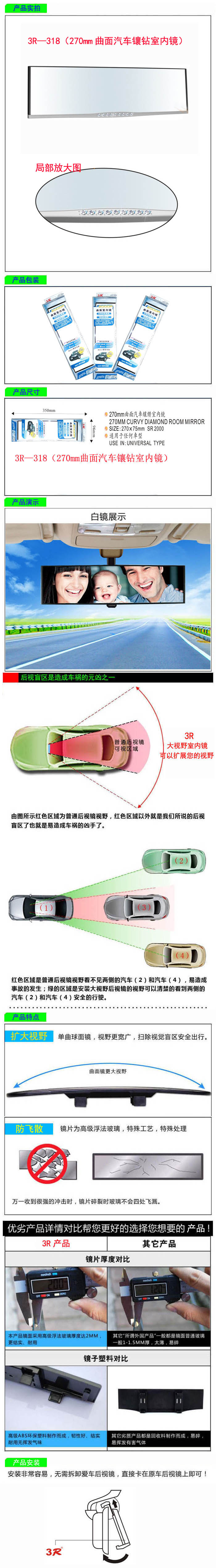 • 型號:   3R—318(270mm曲面汽車鑲鉆室內(nèi)鏡)