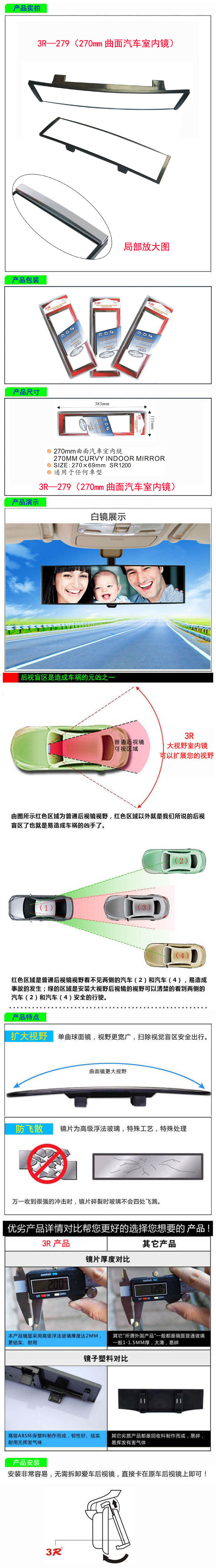 • 型號:   3R—279(270mm曲面汽車室內鏡)