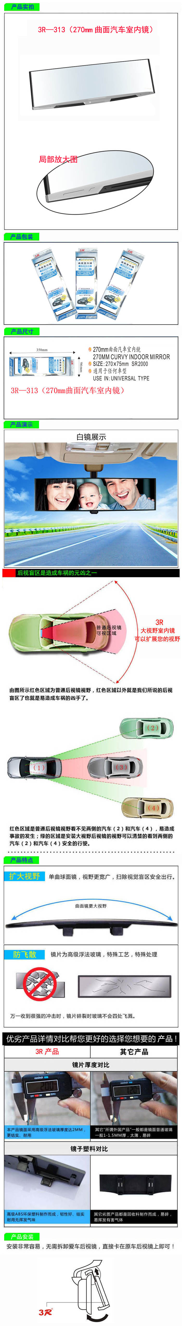 • 型號:   3R—313(270mm曲面汽車室內(nèi)鏡)