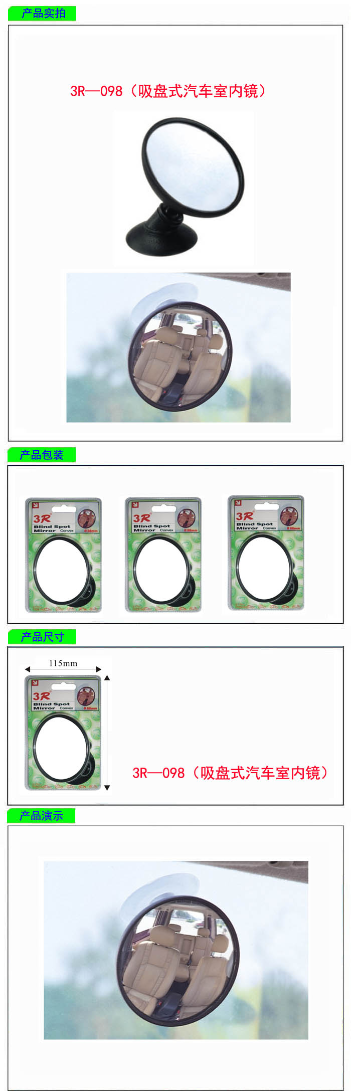• 型號(hào):   3R—098(吸盤式汽車室內(nèi)鏡)