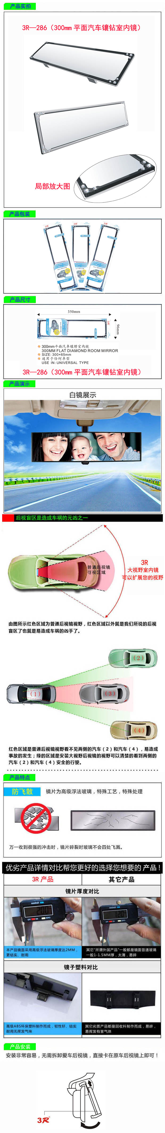 • 型號:   3R—286(270mm曲面汽車室內(nèi)鏡)