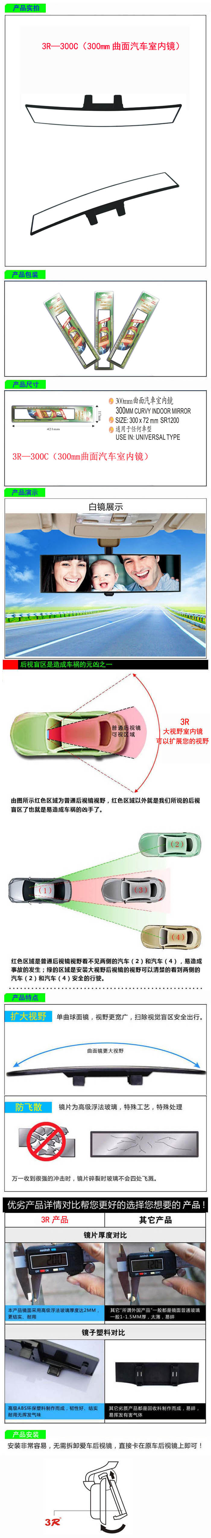• 型號:   3R—300C(300mm曲面汽車室內鏡)