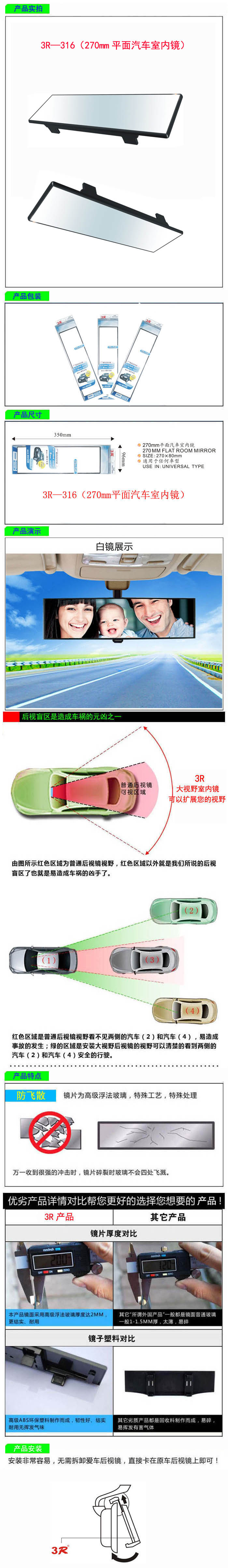 • 型號:   3R—316(270mm平面汽車室內(nèi)鏡)
