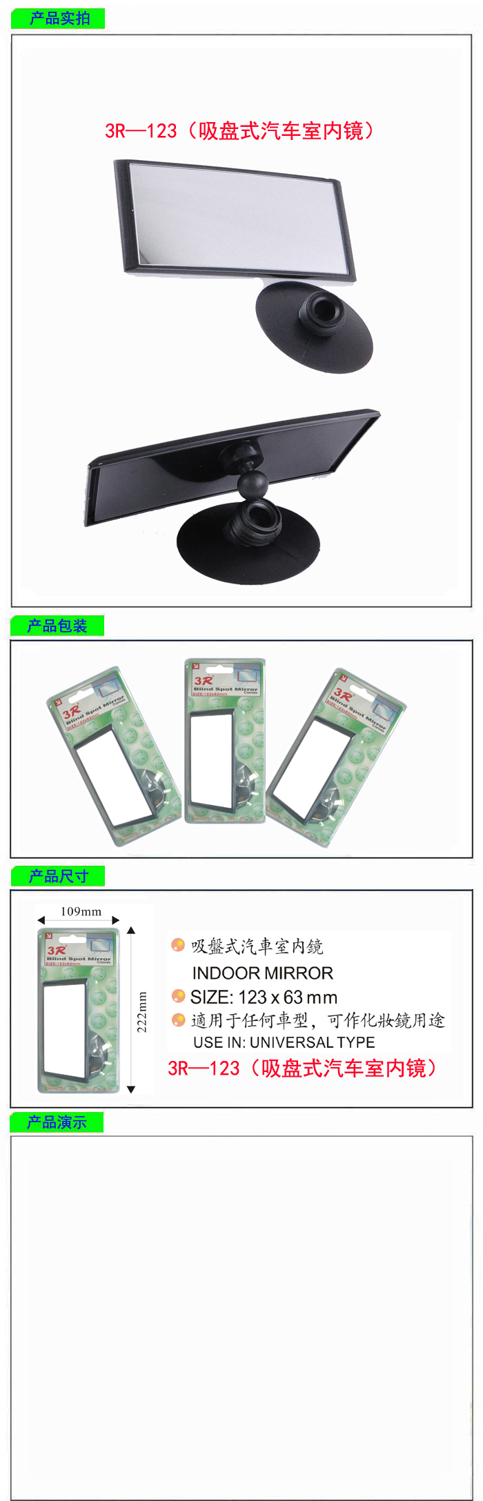 • 型號:   3R—123(吸盤式汽車室內(nèi)鏡)
