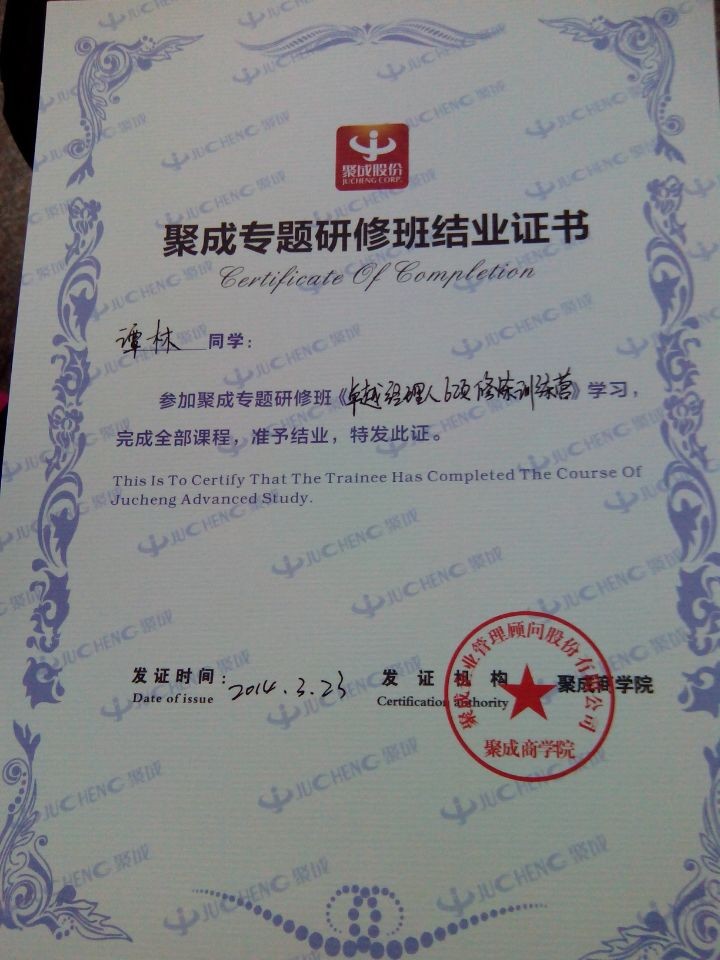 2014年3月22-23日,公司兩名管理人員前往佛山禪城區(qū)石灣賓館,參加聚成公司舉辦的〈卓越經(jīng)理人6項(xiàng)修煉訓(xùn)練營(yíng)〉的培訓(xùn)課程。